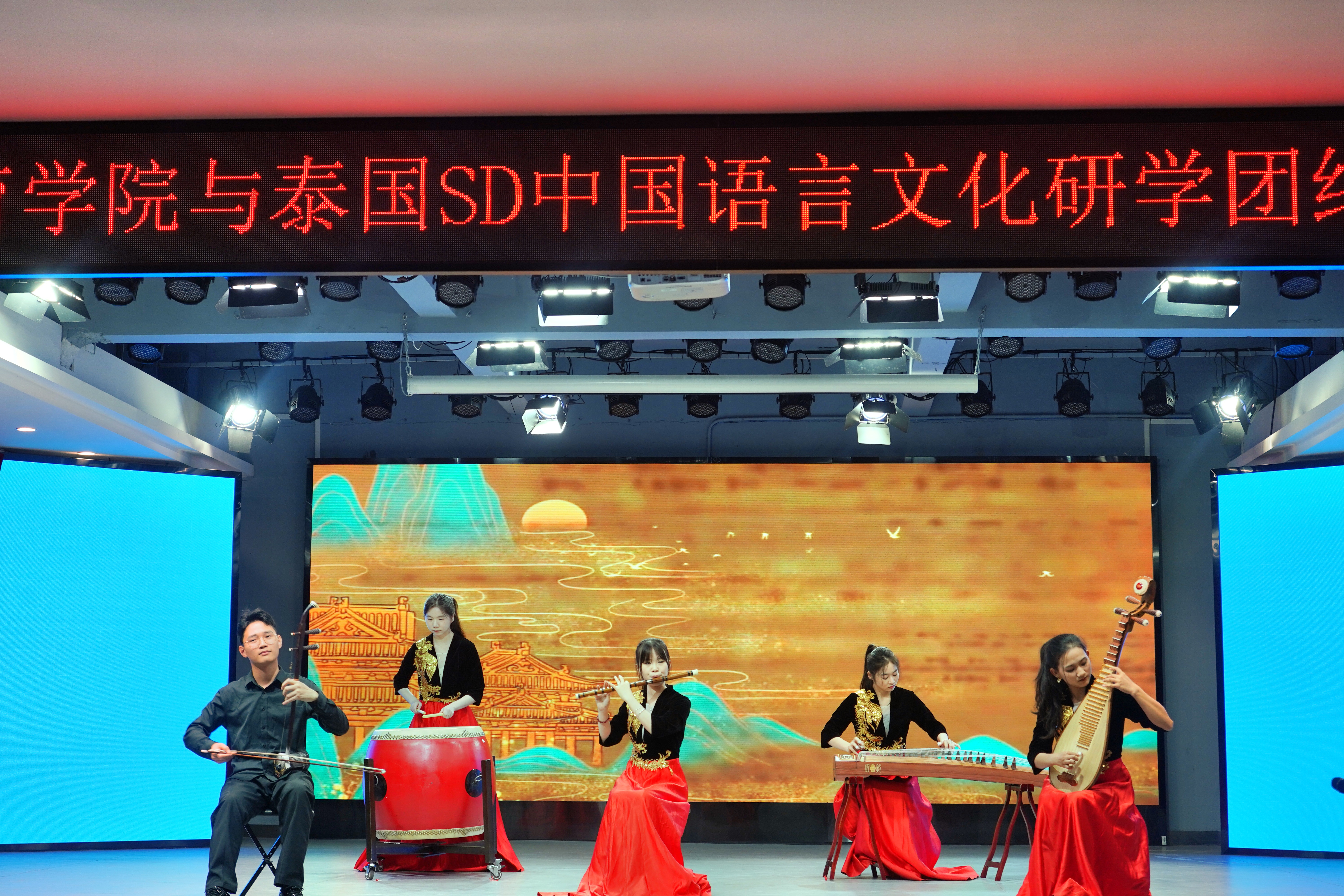 典礼在中国民族管弦乐合奏作品《盛世国乐》中正式开启,激昂的音乐瞬间点燃现场气氛。让泰国师生直观感受中国传统艺术的独特魅力,为典礼奠定了文化交流的温馨基调。