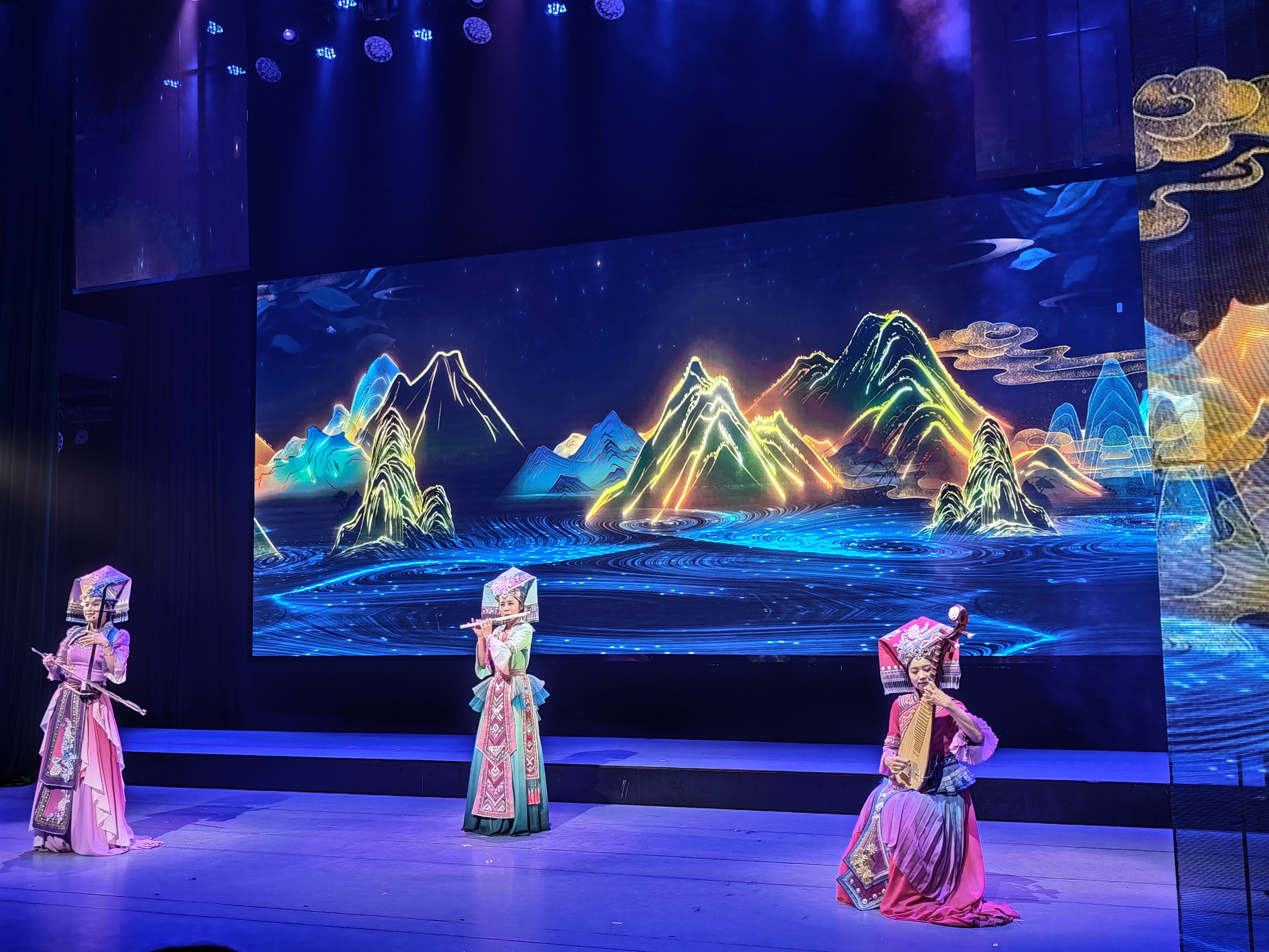 演出在《大地之约》的恢宏序曲中拉开帷幕。八桂儿女以象征祥瑞的铜鼓与寓意美满的绣球,向东盟各国发出深情邀约,携手一同开启友谊的崭新大门。上篇《山相依·相知》里,柬埔寨吉祥孔雀的灵动身姿、缅甸泼水节的欢乐盛景等东盟各国传统文化元素依次呈现,生动展现了中国与东盟各国人民“山同脉、水同源”的深厚情谊。中篇《水相连·相亲》聚焦多元包容与互助共生,诠释双方民心相通、携手共进的时代意义。下篇《情相近·相融》则将视角投向中国与东盟各国在器乐演奏、文化理念等层面的深度交融。精彩的器乐合奏、思想碰撞的文化理念交流,诠释了双方在新型伙伴关系中心灵相通、文化共同繁荣发展的美好景象。尾声,《阿依莎娜·妮娅》以充满希望与活力的旋律、优美动人的舞蹈,传递出各方共同推进“一带一路”建设、携手构建人类命运共同体的美好愿景。