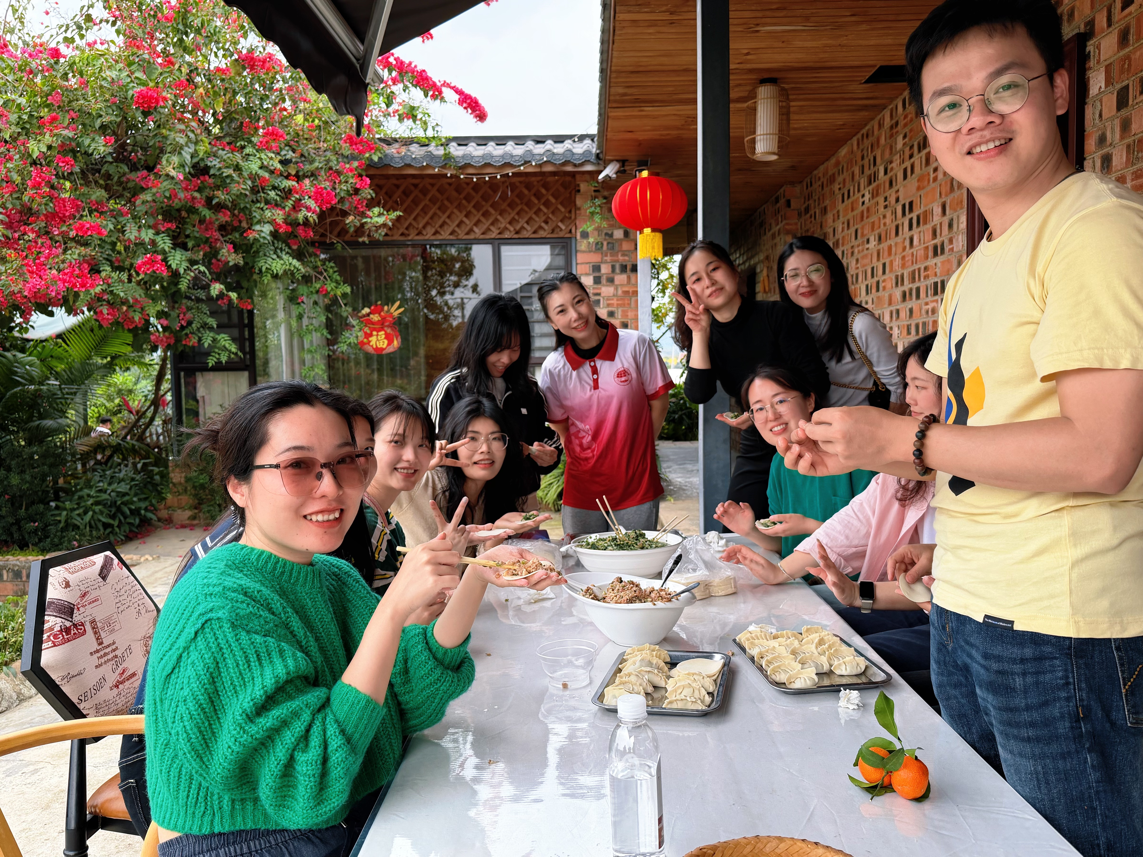 团建活动的尾声,大家齐聚一堂,共同体验包饺子、烧烤的乐趣。女职工们各展所长,有的擀皮、有的包馅,手法娴熟、配合默契,一个个形态各异、饱满圆润的饺子在指尖成型;烧烤区则香气四溢,大家分工协作、轮流上阵,烤制着各类美食,分享着工作中的趣事与生活中的感悟。温馨的氛围中,大家卸下了工作的疲惫,在烟火气中感受着集体的温暖,进一步拉近了彼此的距离,凝聚起 “心往一处想、劲往一处使” 的团队合力。