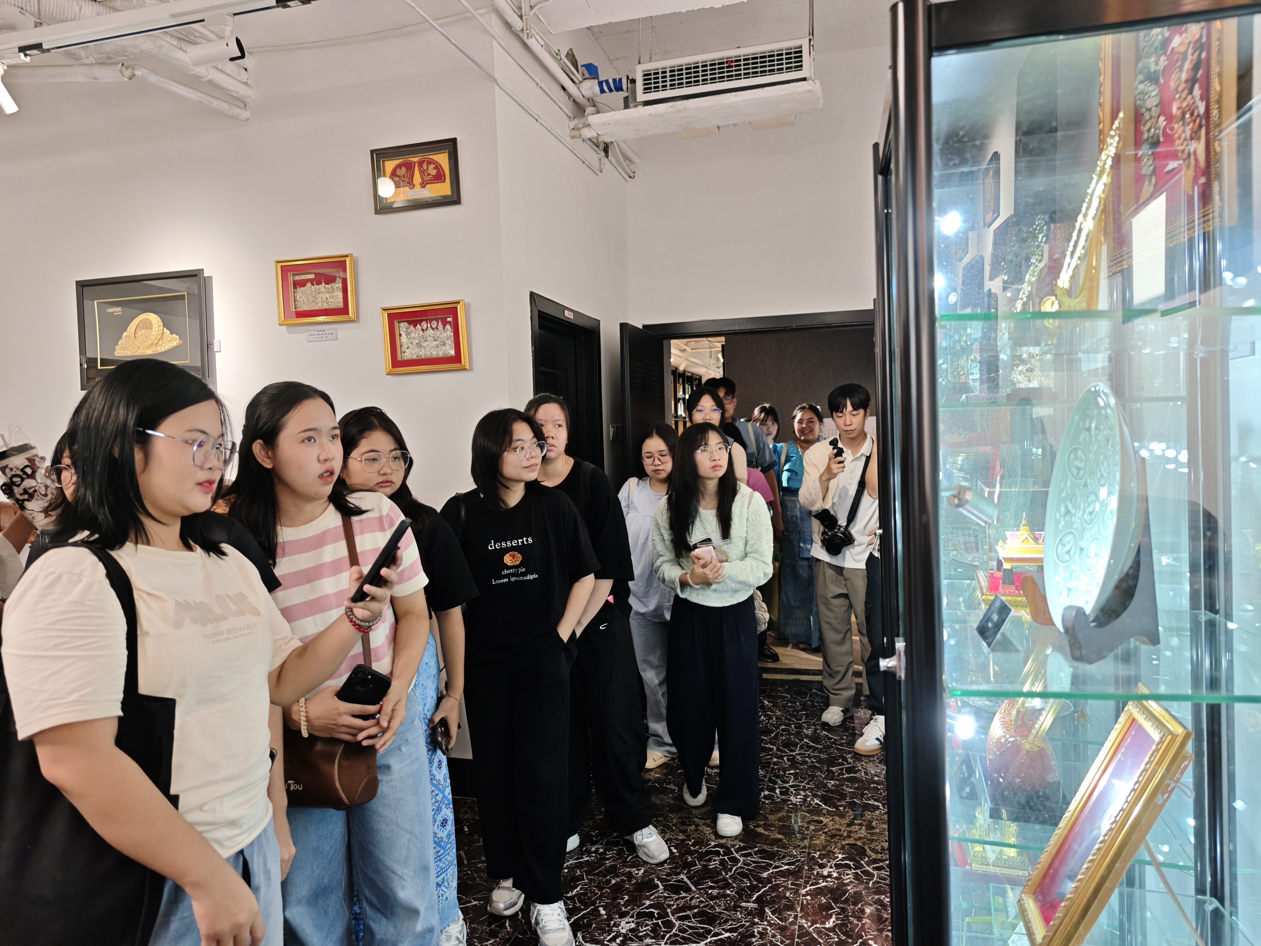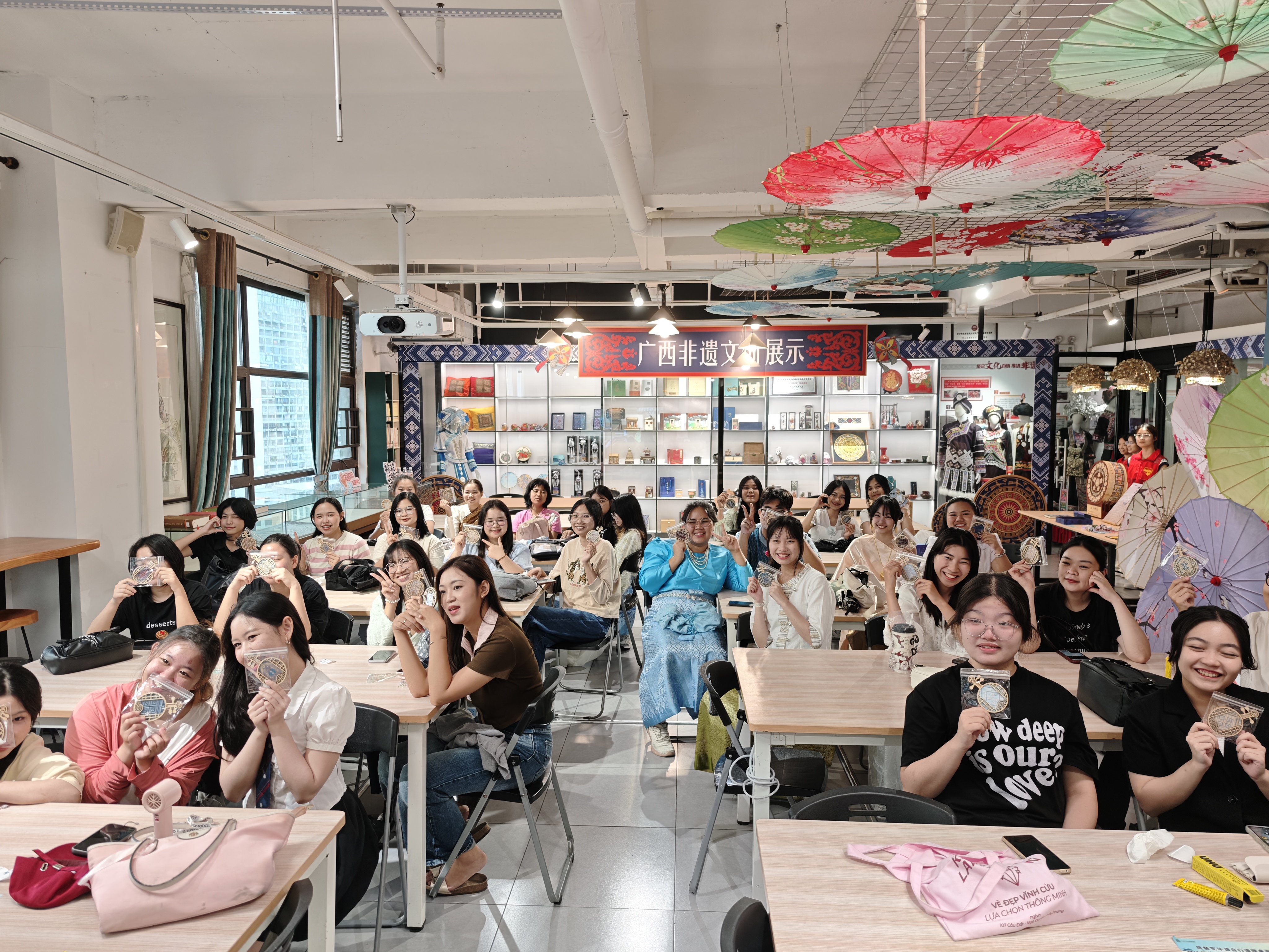 在“壮乡巧艺凝于锦·东盟情长共此时”非遗手工体验环节,留学生们更是热情洋溢。他们围坐在工作台前,在非遗传承人的悉心指导下,亲手制作壮锦冰箱贴。从挑选壮锦布料开始,留学生们就表现得格外认真,仔细比较着不同颜色和图案的布料,挑选出自己钟爱的一款。接着,他们学习如何将壮锦布料裁剪成合适的形状,并细致地缝合在冰箱贴的底座上。经过一番努力,一个个色彩斑斓、图案精美的壮锦冰箱贴在留学生们手中诞生,他们看着自己的作品,脸上洋溢着自豪和喜悦。通过这些活动,留学生们不仅深入了解了广西本土文化的独特魅力和东盟文化的多元特色,而且极大地拓宽了他们的国际视野,显著增强了跨文化交流的能力。