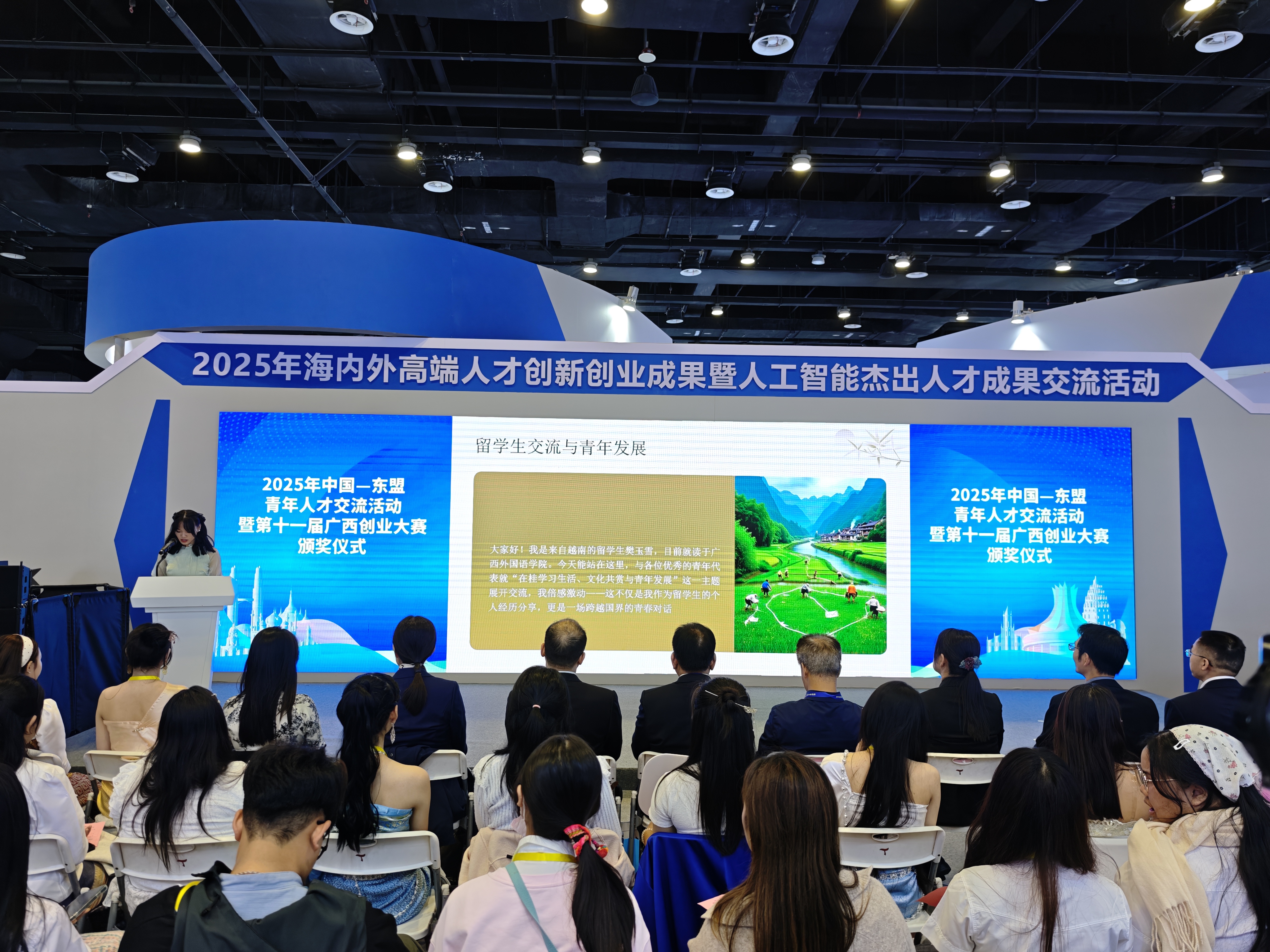 11月19日上午,广西外国语学院国际教育学院组织中外师生代表参加由自治区人力资源社会保障厅、教育厅联合主办的“2025年中国—东盟青年人才交流活动暨第十一届广西创业大赛颁奖仪式”。
