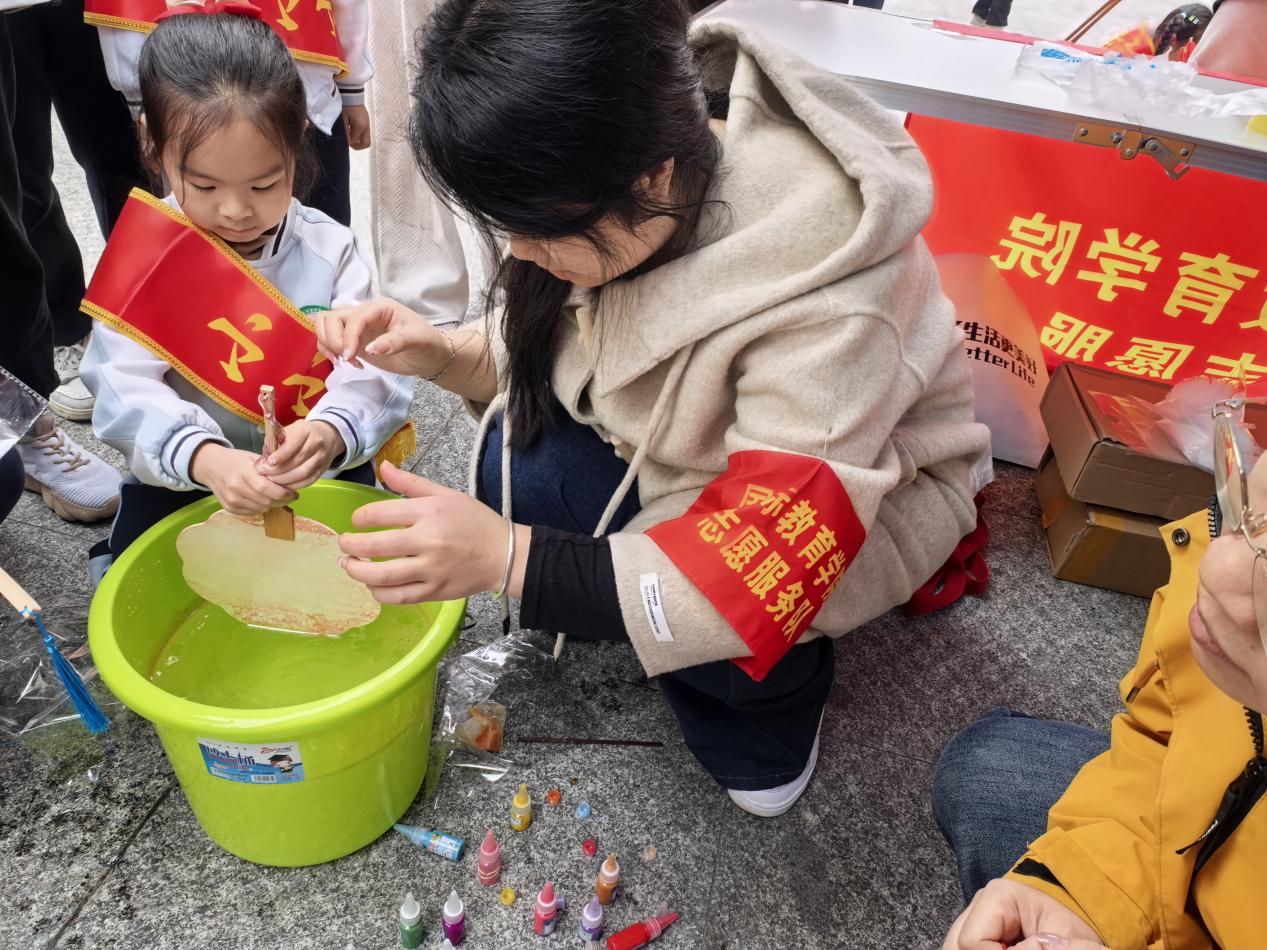 中外志愿者们提前精心备齐了素扇、环保漆料、调色工具、水桶等物资,还提前在扇面上一笔一划书写下“松鹤延年”“百福呈祥”“万事如意”等吉祥书法祝福语,更创造性融入雷锋精神,让每一笔墨痕都承载着对老人的关心以及对雷锋精神的传承。志愿者们俯下身、弯下腰,手把手细致教学,耐心陪伴老人一步步完成滴漆、晕染等工序,以及开展投壶活动,引导老人孩童在动手实践中感受非遗魅力,在协作互动中体会传统文化的深厚底蕴与温暖情谊。