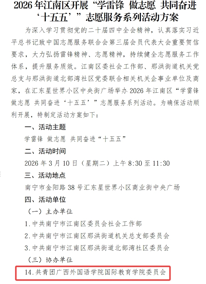 (国际教育学院团委受邀参加北部湾社区学雷锋志愿服务活动)